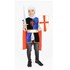 Ce déguisement pour enfant comprend un top de chevalier avec une cape, une capuche amovible, une épée et un bouclier.