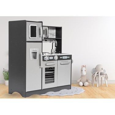 La cuisine Mamabrum avec design unique en bois de la plus haute qualité et de panneaux MDF avec quelques éléments en plastique est parfaite pour un jeu en solo ou en groupe. Les pièces mobiles ont été fabriquées avec grand soin, coins arrondis sans arêtes vives. Elle est toute équipée . Ses couleurs sobres clair correspondent à tous les intérieurs et plairont aux filles comme aux garçons.