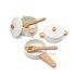 Ensemble de casseroles en bois, un jouet d'imitation de la marque New Classic Toys. Référence 10645.Age minimum recommandé : 2 ansAge maximum recommandé : 6 ans