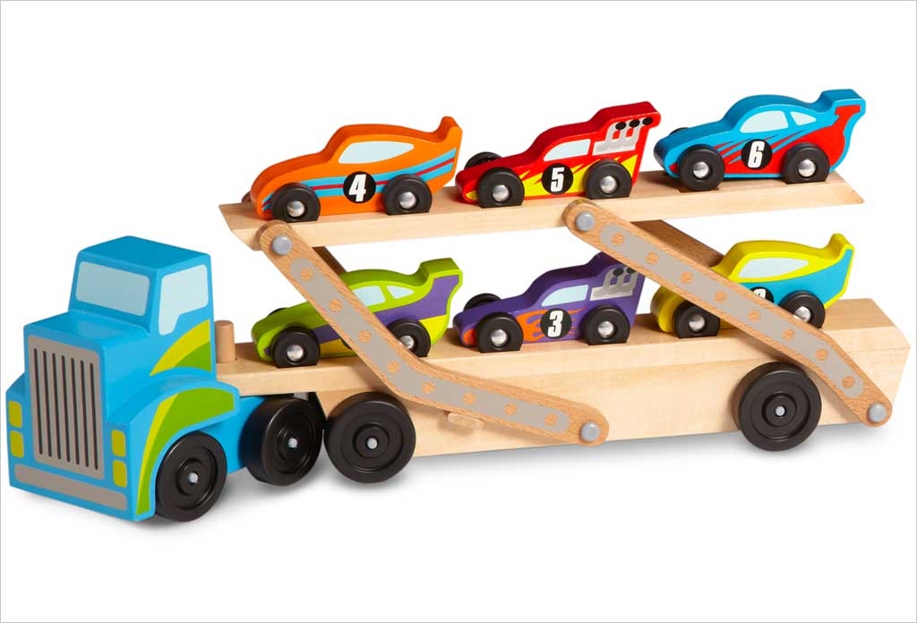 Grand camion porte voiture de course