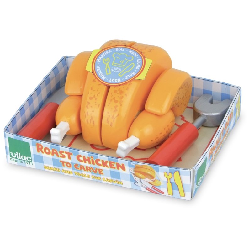Poulet rôti à découper, un jouet en bois de la marque Vilac. Référence 6304.Cet article ne convient pas aux enfants de moins de 3 ans.Age minimum recommandé : 3 ansAge maximum recommandé : 8 ans