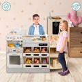 Grand magasin en bois pour enfants avec fast-food - Magasin d'angle + Machine à café + Four + Réfrigérateur - 106 accessoires inclus !