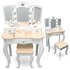 Équipée d'un éclairage LED et d'un miroir à 3 branches, la coiffeuse est le rêve devenu réalité de toutes les petites filles. Le grand tiroir peut facilement contenir tous les trésors de votre enfant tels que les jouets, les bijoux, les gadgets et plus encore, ce qui permet de garder le plateau de la table bien rangé. La coiffeuse est l'endroit idéal pour un coin beauté, mais pas seulement. C'est aussi un centre de jeux créatifs et de jeux de rôle, comme le coiffeur, l'esthéticienne, le maquilleur et bien d'autres choses encore !