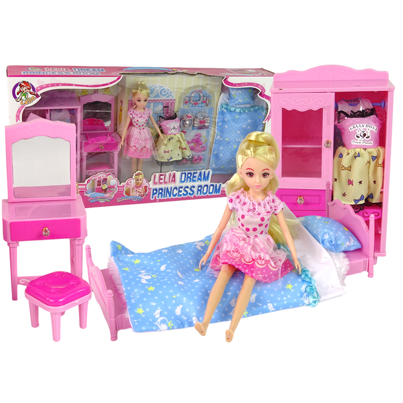 Ensemble de meubles pour poupée lit armoire coiffeuse tabouret
