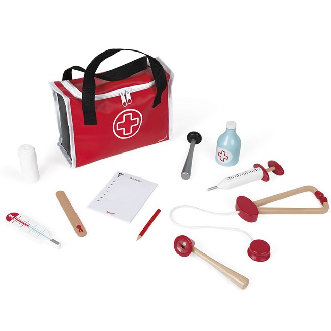 - Avec sa belle couleur rouge et sa croix, pas de doute, c'est la mallette d'un vrai médecin !