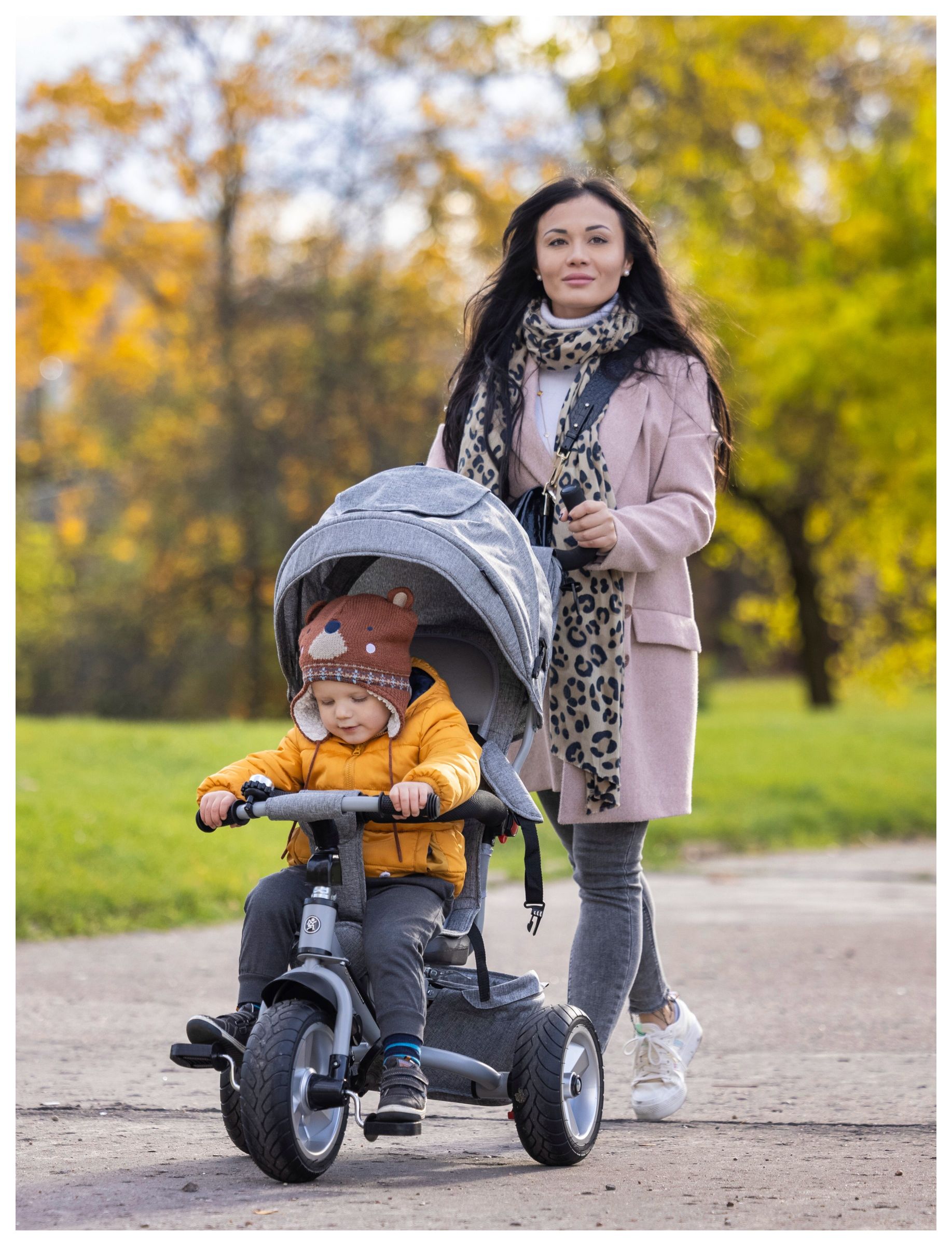 Tricycle Évolutif pour Enfant 1 an à 5ans Poussette Tobi Spiner, un poids maximum de 25 kg , possède les meilleures caractéristiques et fonctions qu'un tricycle peut avoir. Votre enfant grandit avec son vélo, presque tous les éléments pratiques pour un petit enfant peuvent être démontés plus tard pour laisser place à un tricycle contrôlé et piloté par le petit seul.