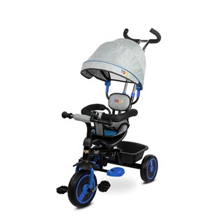 Tricycle poussette trois roues buzz bleu marine avec capote pliante et harnais