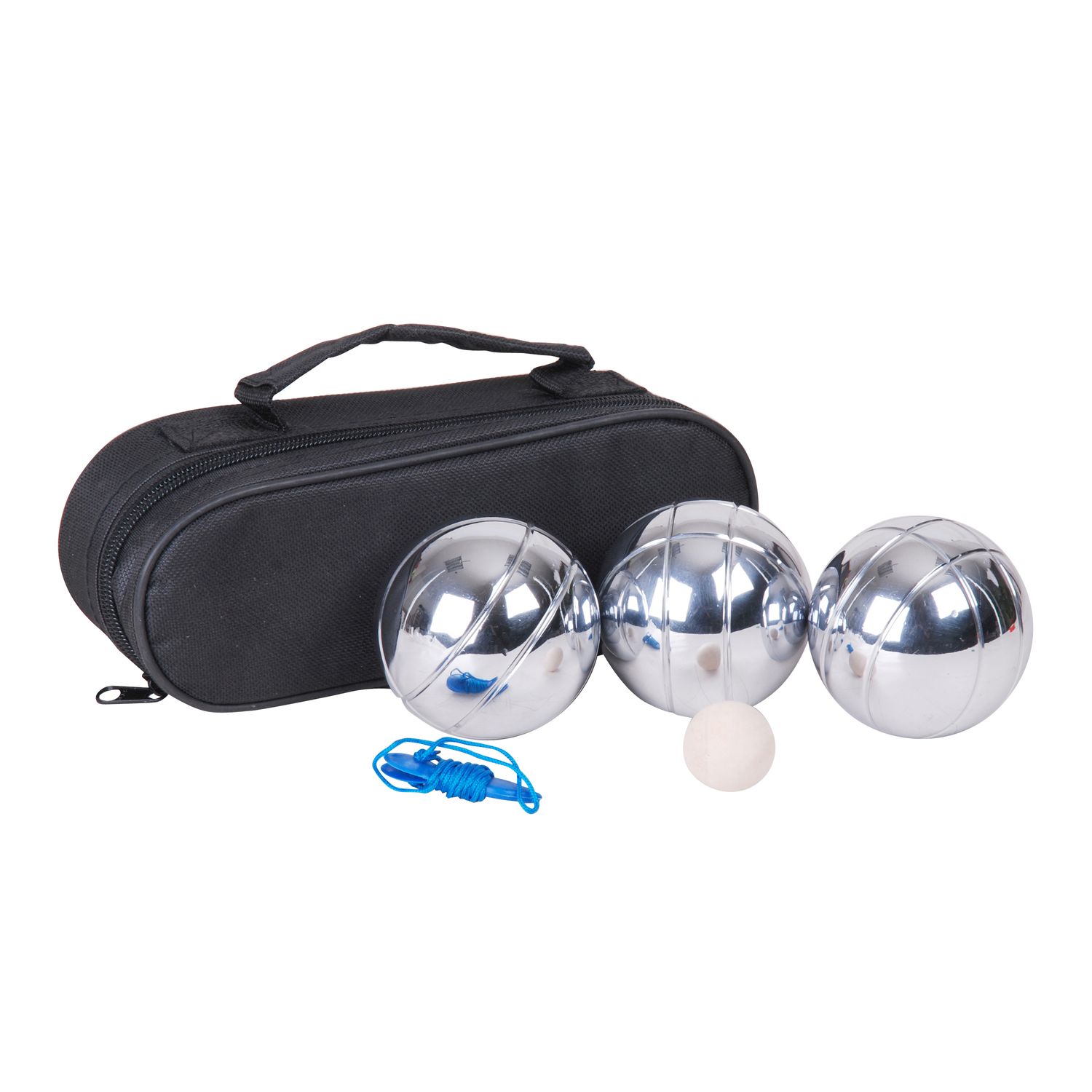 - Set contenant 3 boules de pétanque, un cochonnet, un mètre et une housse pour les transporter facilement.