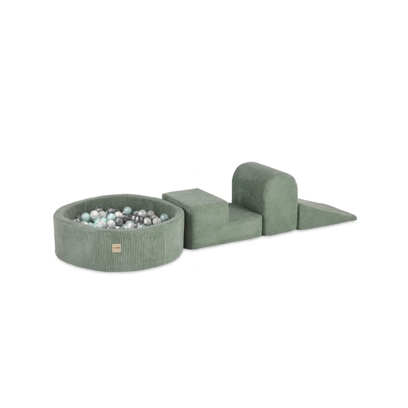 Nos produits sont confectionnés avec des matériaux de haute qualité , choisis pour leur douceur et leur résistance. L'attention portée aux détails et les designs variés qui permettent de créer un espace de vie à la fois esthétique et ludique. Avec Plush Nest, transformez la chambre de votre enfant en un refuge de rêve. Nos articles ne sont pas de simples meubles, mais des invitations au jeu, à la détente et à la créativité. Ils sont le complément parfait pour un intérieur chaleureux et familial, où chaque moment est un instant de bonheur partagé. Contient : Aire de jeux 3 éléments + piscine 90x30 (+200 balles : pearl pearl mint silver) velours côtelé premium vert