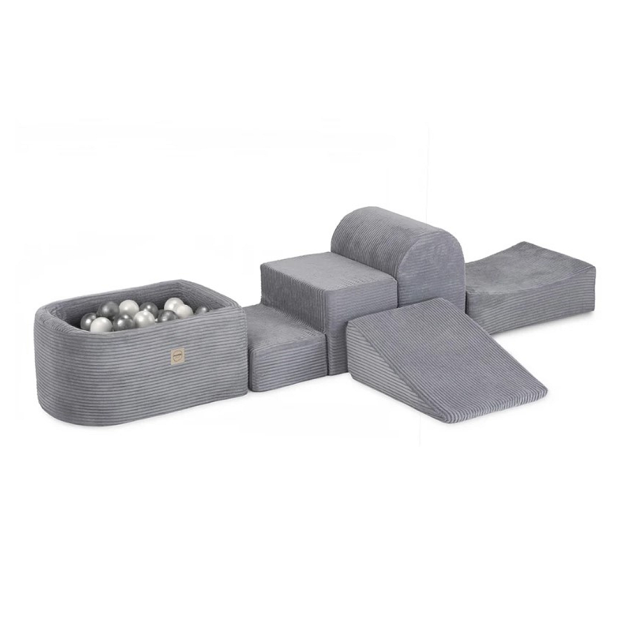 Nos produits sont confectionnés avec des matériaux de haute qualité , choisis pour leur douceur et leur résistance. L'attention portée aux détails et les designs variés qui permettent de créer un espace de vie à la fois esthétique et ludique. Avec Plush Nest, transformez la chambre de votre enfant en un refuge de rêve. Nos articles ne sont pas de simples meubles, mais des invitations au jeu, à la détente et à la créativité. Ils sont le complément parfait pour un intérieur chaleureux et familial, où chaque moment est un instant de bonheur partagé. Contient : Mini aire de jeux (+ piscine et 100 balles) en velours côtelé gris premium (perle et argent)