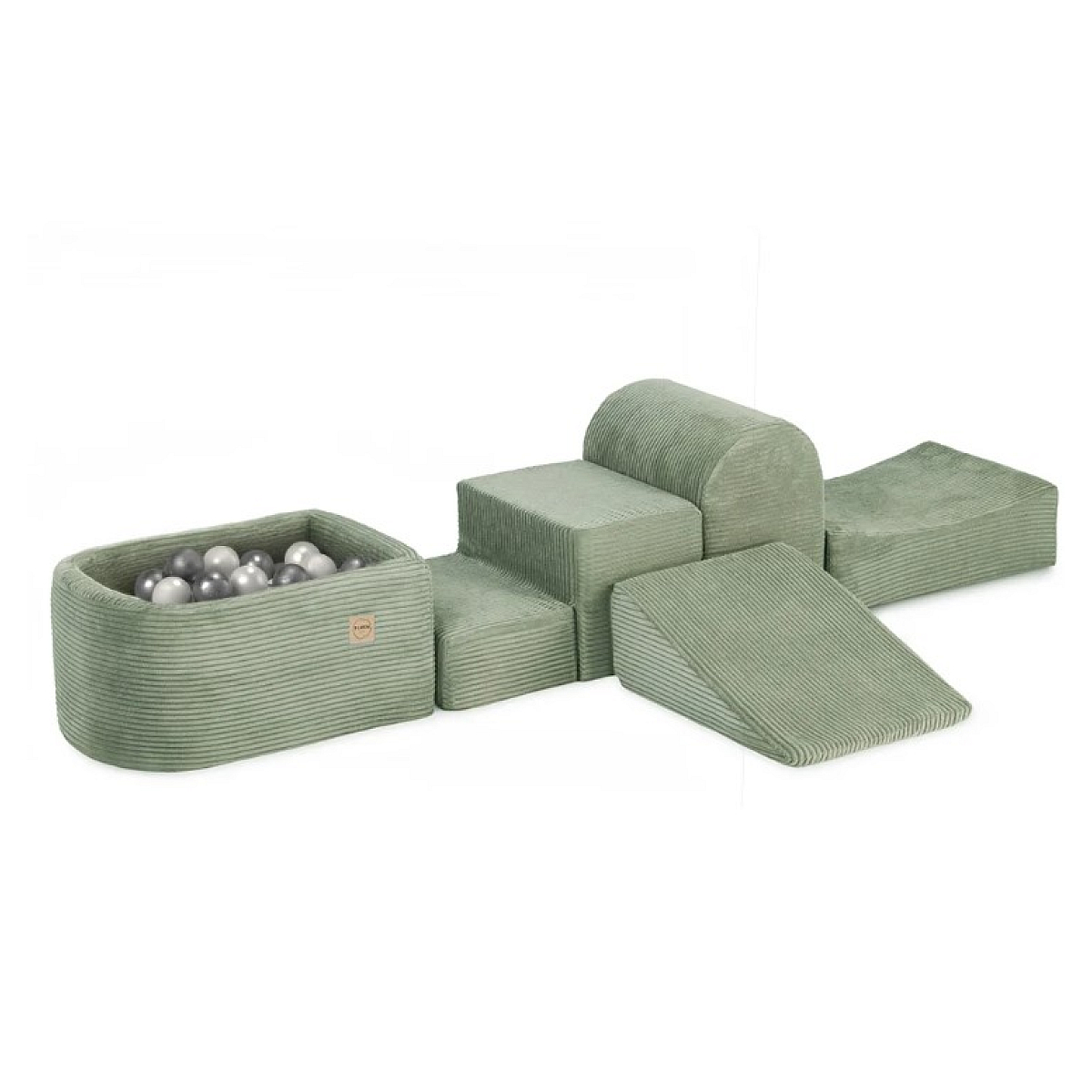 Nos produits sont confectionnés avec des matériaux de haute qualité , choisis pour leur douceur et leur résistance. L'attention portée aux détails et les designs variés qui permettent de créer un espace de vie à la fois esthétique et ludique. Avec Plush Nest, transformez la chambre de votre enfant en un refuge de rêve. Nos articles ne sont pas de simples meubles, mais des invitations au jeu, à la détente et à la créativité. Ils sont le complément parfait pour un intérieur chaleureux et familial, où chaque moment est un instant de bonheur partagé. Contient : Mini aire de jeux (+ piscine et 100 balles) en velours côtelé vert premium (perle et argent)