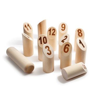 Contient : 12 quilles numérotées de 1 à 12, et 1 lanceur, le molkky.