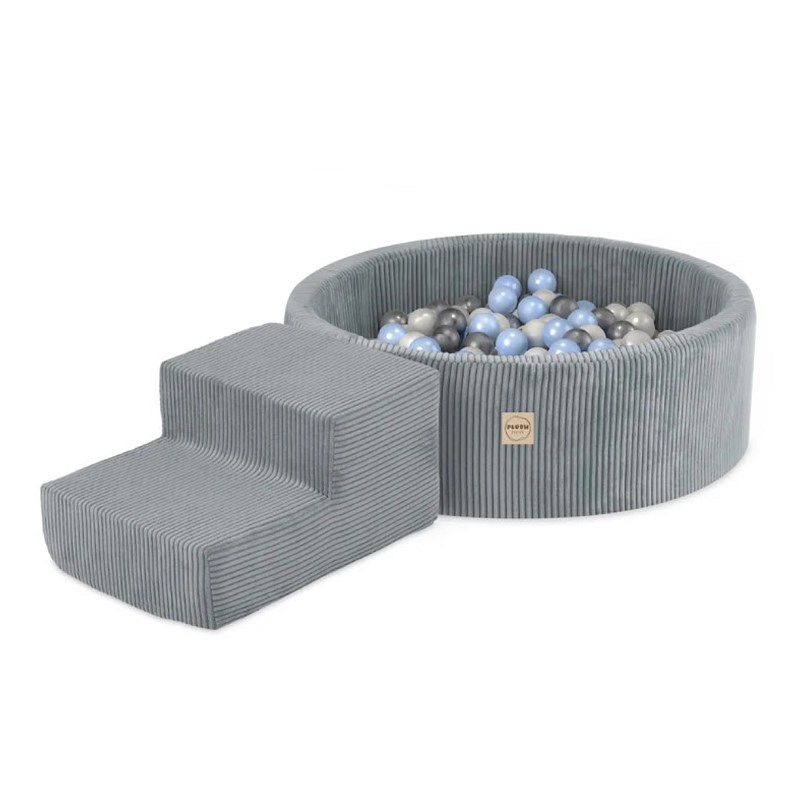Nos produits sont confectionnés avec des matériaux de haute qualité , choisis pour leur douceur et leur résistance. L'attention portée aux détails et les designs variés qui permettent de créer un espace de vie à la fois esthétique et ludique. Avec Plush Nest, transformez la chambre de votre enfant en un refuge de rêve. Nos articles ne sont pas de simples meubles, mais des invitations au jeu, à la détente et à la créativité. Ils sont le complément parfait pour un intérieur chaleureux et familial, où chaque moment est un instant de bonheur partagé. Contient : Aire de jeux Piscine 90x30 + marche (+200 balles : argent nacré bleu clair) velours côtelé gris premium