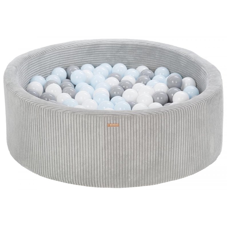Piscine à balles ronde en velours côtelé avec 200 balles 90 cm gris/blanc, gris, bleu (pastel)