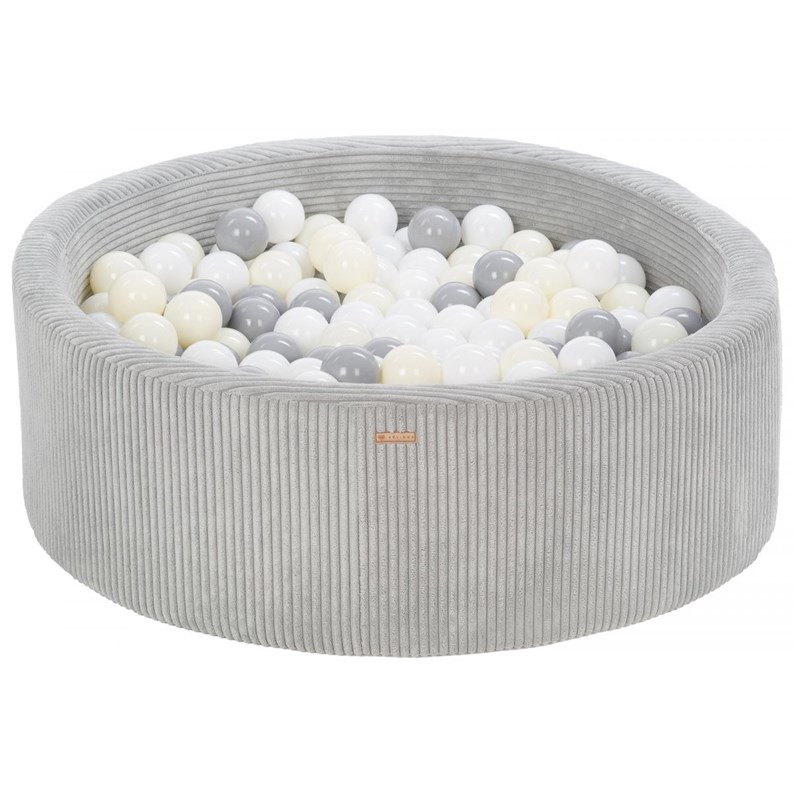 Piscine à balles ronde en velours côtelé avec 300 balles 90 cm gris/blanc, gris, jaune (pastel)
