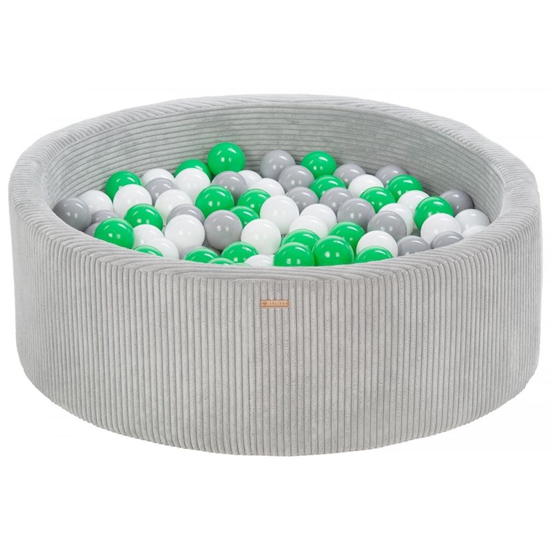 Piscine à balles ronde en velours côtelé avec 300 balles 90 cm gris/blanc, gris, vert