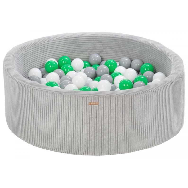 Piscine à balles ronde en velours côtelé avec 200 balles 90 cm gris/blanc, gris, vert
