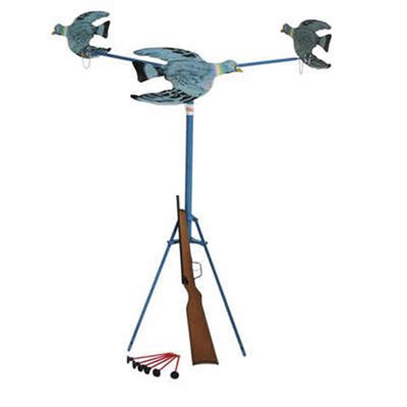 Un jeu de tir aux pigeons avec une carabine 1 coup qui tire des ventouses en plastique.