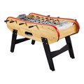 L'arrivée des balles centrale permet toujours une remise en jeu rapide et est désormais proposée dans un receptable en aluminium où les balles viennent se reposer en attendant la prochaine partie ! Les poignées longues estampillées Catenaccio sont en caoutchouc dur pour une bonne prise en main et un contrôle parfait de la balle. La marque propose en option des poignées rondes. Les comptes points sont situés à coté des cages de part et d'autre du terrain et sont assortis aux couleurs des joueurs. La seule chose qui manque à ce modèle est un monnayeur que vous retrouverez sur le modèle Catenaccio de bar.