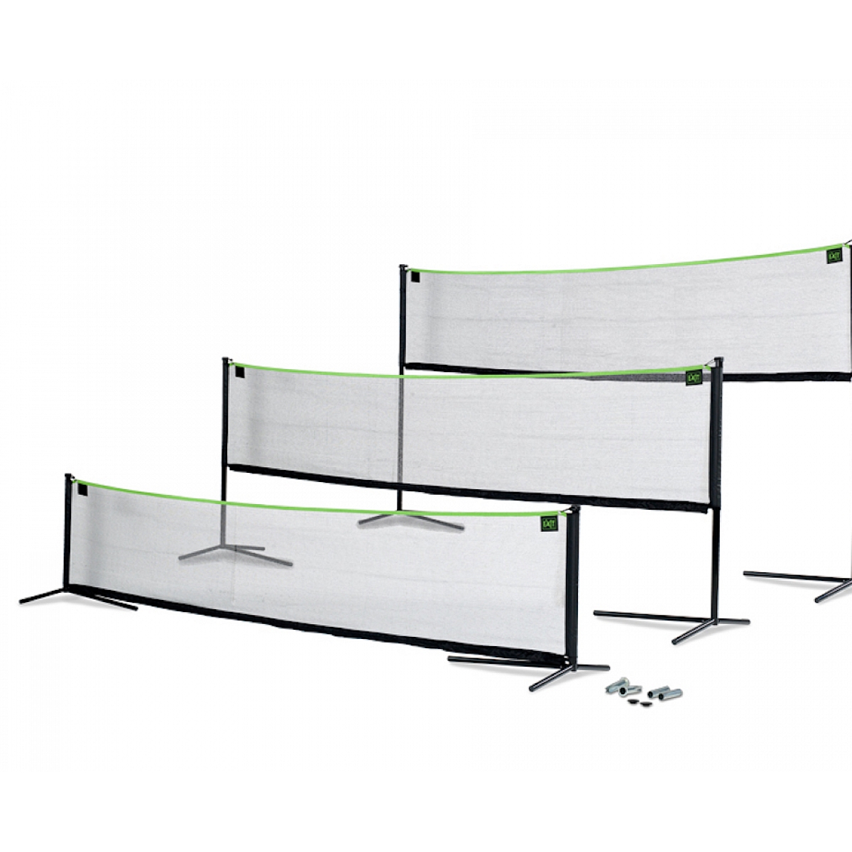 Le filet Multi-Sport d'EXIT possède un double système de tension du filet qui veille à maintenir une tension optimale. Les raccords de tubes horizontaux en métal sur le bas du filet vont d'un côté à l'autre. La largeur de cette liaison est réglable, ce qui permet de tendre le filet. La liaison élastique sur le côté supérieur du filet vers les montants veille à ce que le haut du filet soit également tendu.