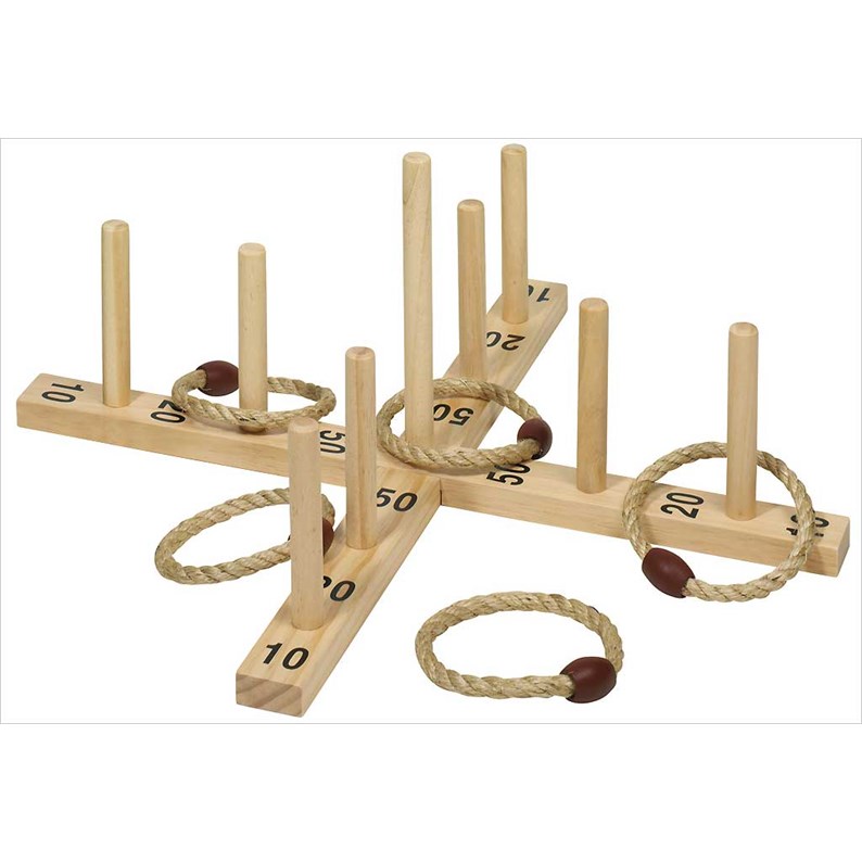 Ce jeu d'antan traditionnel permet de faire du calcul mental tout en jouant avec adresse.Ce jeu de lancer d'anneaux en bois Goki avec 5 anneaux en sisal convient pour une utilisation à l'intérieur comme à l'extérieur.