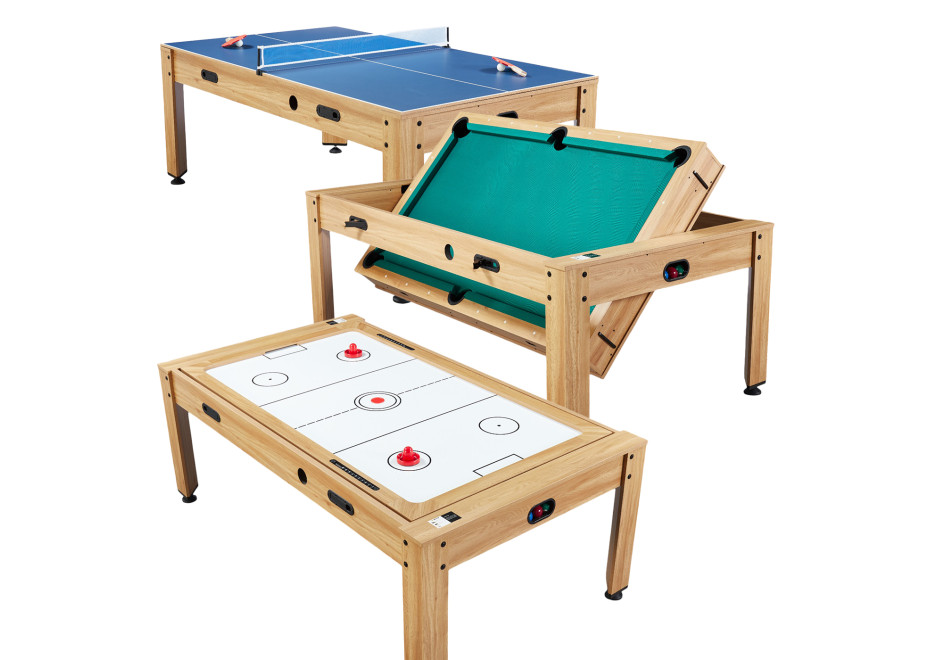 La Table Multi Pro Rotative 7FT séduit par sa finition en bois clair, élégante et chaleureuse. Associée à des détails plus sombres, elle apporte du contraste et un style moderne qui s'intègre aussi bien dans une pièce contemporaine que dans une salle de loisirs conviviale. Plus qu'un simple meuble de jeu, elle devient un véritable élément de décoration.