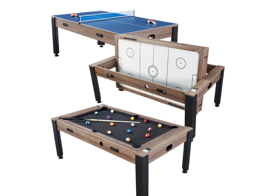 Vous cherchez une table de jeux complète et solide ? La Table Multi Pro Rotative 7FT réunit quatre activités incontournables dans un seul meuble : billard américain, air hockey électrique, ping-pong et table à manger. Conçue pour les adultes, elle associe design industriel et robustesse pour devenir le centre de vos moments de détente.