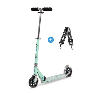 Les roues de la Micro Speed+ sont plus grandes (145 mm) et dotées d'absorbeurs de chocs, ce qui permet une glisse confortable même en roulant vite sur un bitume de mauvaise qualité. Grâce à la planche extra large et à son revêtement agrippant spécial, on peut adopter une position très stable. La nouvelle couleur 'mint' en fait la trottinette idéale pour le printemps !