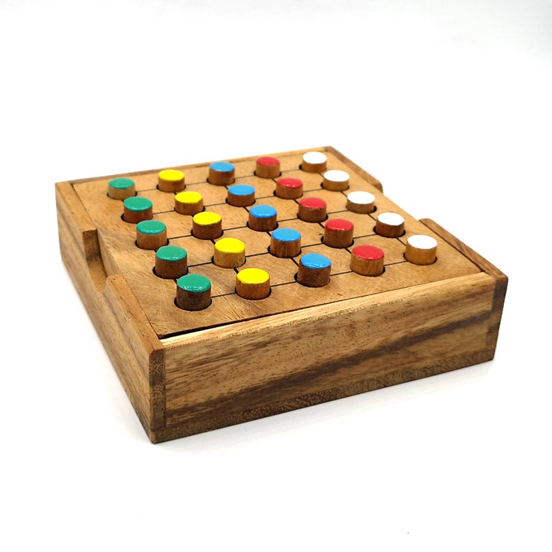 Les 5 différents est un jeu de logique dont le but est de disposer les pions de façon à ce que chaque ligne et chaque diagonale soient composées par 5 pions de couleurs différentes.