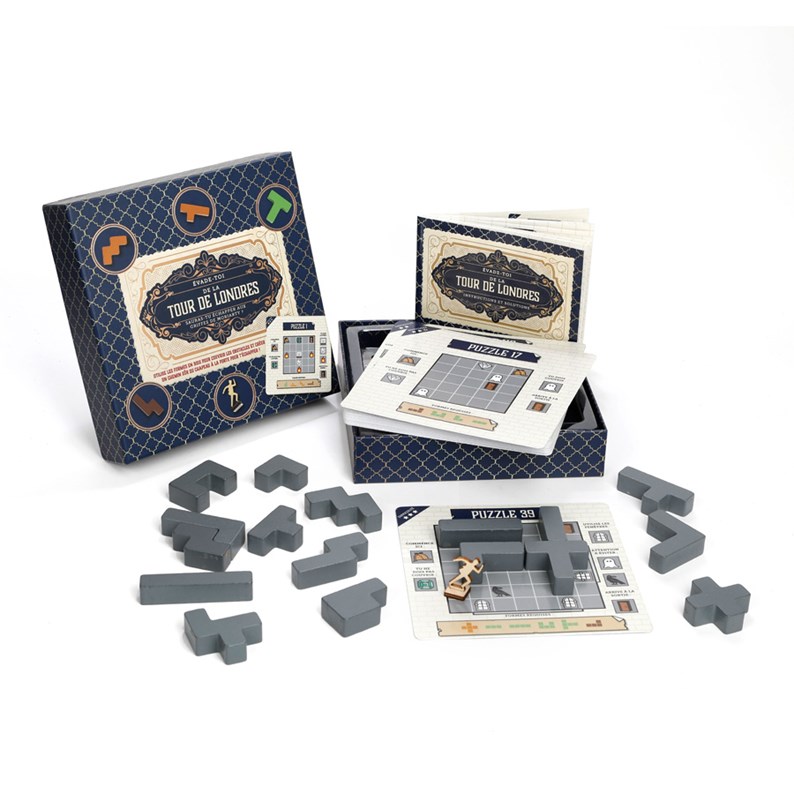 Contient : 40 cartes de défi, 16 blocs de bois, 1 compteur de jeu, 1 livret d'instructions et de solutions.