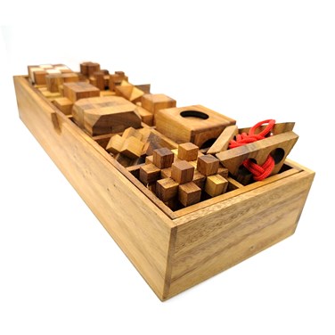 Magnifique coffret en bois comprenant 12 casse-tête de difficultés différentes.