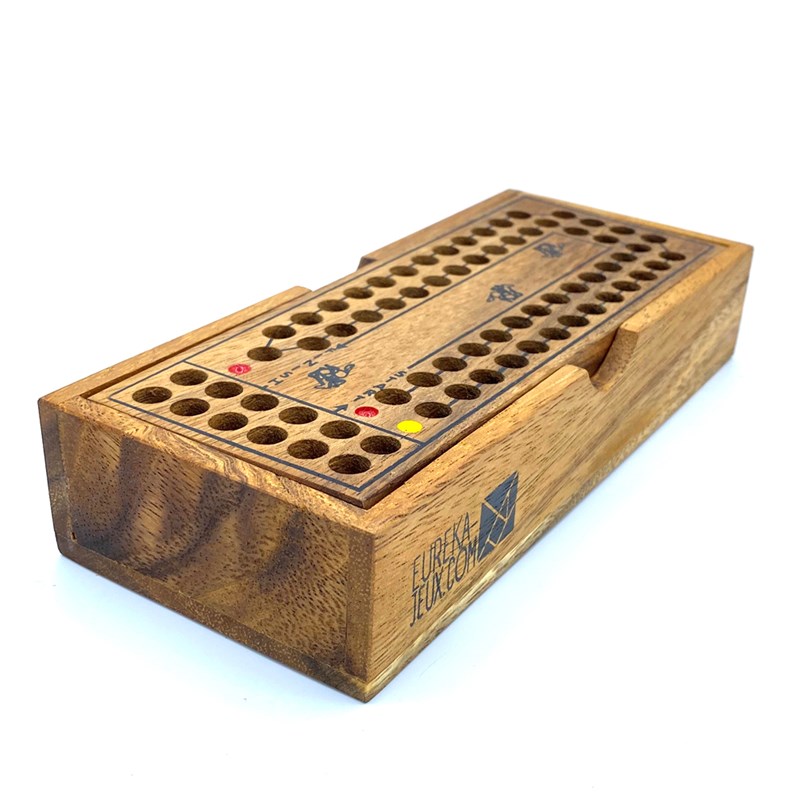 Ce jeux en bois est une variante des petits chevaux mais avec des pièges sur la route ! Le premier arrivé a gagné mais attention aux surprises. Le plateau saura se transformer en une astucieuse boîte facile à ranger ou à transporter.