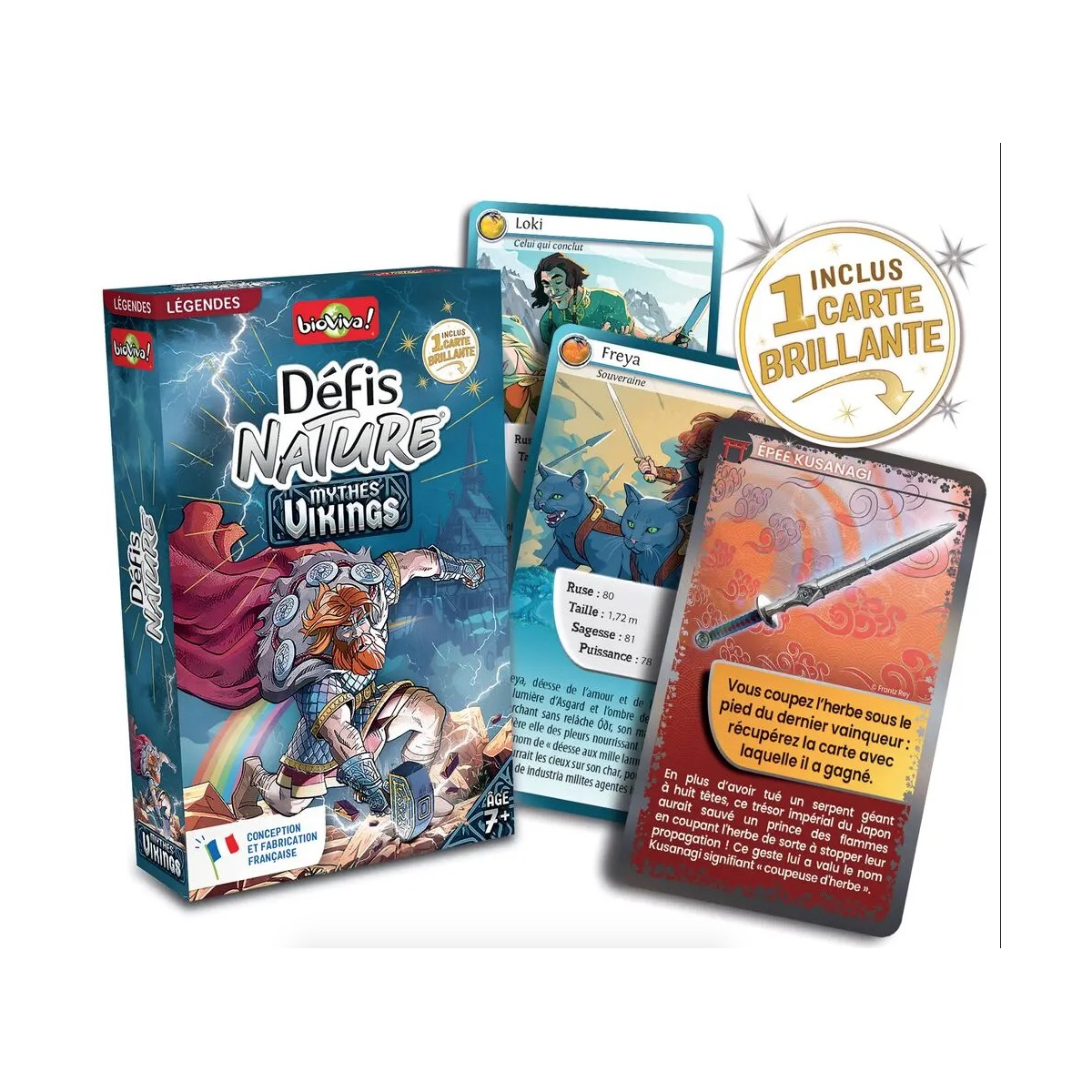 Défis Nature vous emmène à la rencontre des dieux, déesses et créatures emblématiques de la mythologie nordique. Découvrez leurs incroyables pouvoirs, puis pariez sur leurs points forts pour remporter la partie ! Alors, prêts à relever le défi ? Caractéristiques : Taille ? Puissance ? Sagesse ? Ruse Pastille : Date d'apparition De 2 à 6 joueurs. Dès 7 ans. Fabriqué en France de manière éco-responsable.