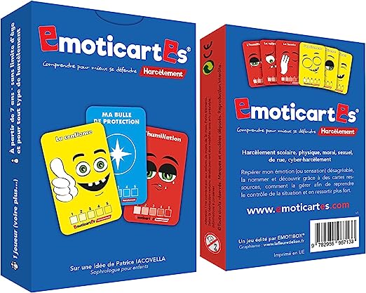 • Adapté pour tous les âges : adapté aux enfants dès 6 ans et aux adultes, les Emoticartes Harcèlement sont conçues pour être utilisées dans divers contextes : à la maison, à l’école, en thérapie ou dans des groupes de soutien. Ce jeu est un investissement précieux pour toute famille ou professionnel souhaitant aborder et gérer le harcèlement de manière ludique et engageante.