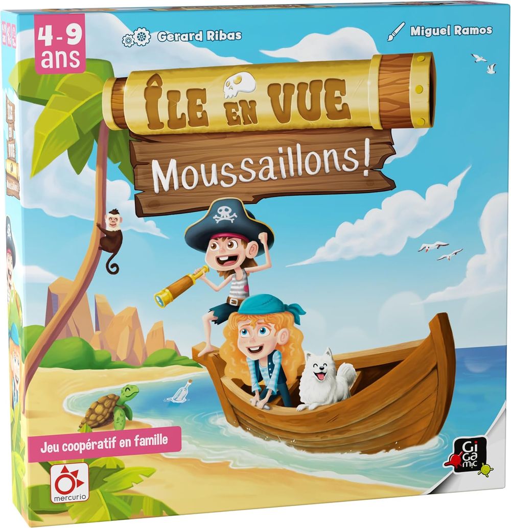 Dans Île en vue Moussaillons, vous voyagez sur le même bateau et vous gagnez ou perdez en équipe. Après avoir lu l’histoire dans laquelle vous vous trouvez, vous devez rapidement consulter une carte. Avec ce que vous aurez retenu, vous devez trouver l’île au trésor en regardant dans la longue-vue et en repérant les bons détails. Il y a beaucoup d’îles dans les Caraïbes, mais une seule cache le butin...