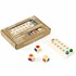 Contenu : 3 dés en bois, 1 marqueur de points en bois avec 2 billes colorées et une notice.