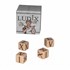- Contenu du jeu : 4 dés spéciaux avec les faces L-X-X-V-I-I