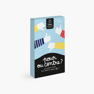 POUR OU CONTRE est un jeu imprimé avec des encres végétales par un imprimeur certifié et conditionné par des travailleurs handicapés, le tout, tout près de Lille en France.