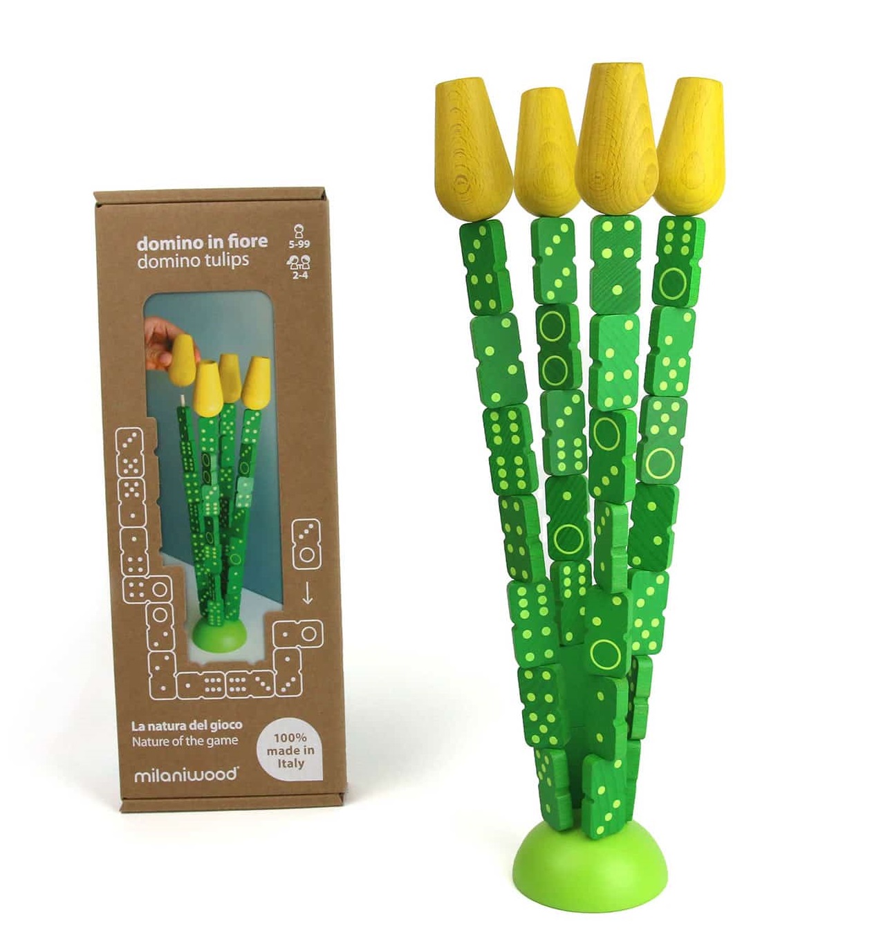 Jeu de domino Tulipes de la marque Milaniwood.Cet article ne convient pas aux enfants de moins de 3 ans.Age minimum recommandé : 4 ansAge maximum recommandé : 12 ans
