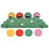 - Niveau 2 : Une suite de couleurs est créée avec les coccinelles. Après les avoir cachées, l’enfant doit la reproduire avec des jetons en bois.
