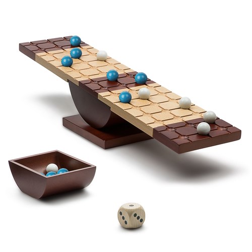 - Contient : 12 billes blanches, 12 billes bleues, 1 plateau, 1 bascule, 1 plateforme et 1 dé.