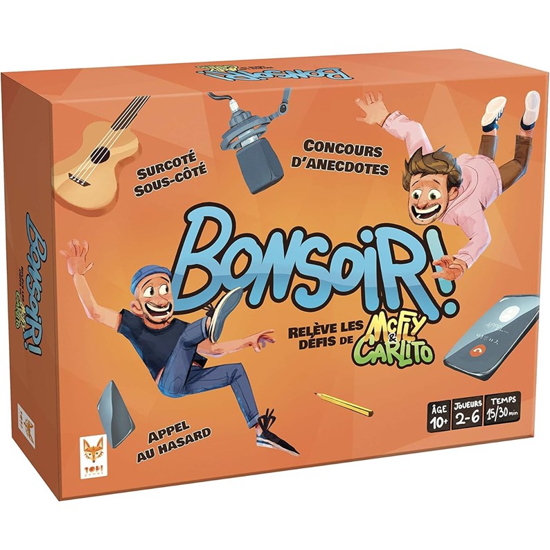 Bonsoir de Mc Fly et Carlito, un jeu de société de la marque Topi Games.Cet article ne convient pas aux enfants de moins de 3 ans.Age minimum recommandé : 10 ansAge maximum recommandé : 12 ans