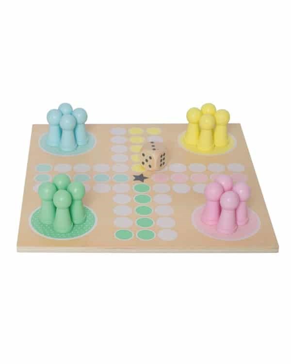 Le jeu est aussi particulier avec son design et ces couleurs , il ira parfaitement dans une chambre d'enfant .Le dé et les pions sont en bois et plus gros que la normale ce qui facilite la prise en main des plus petits .
