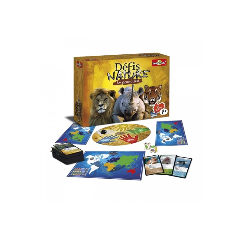 Contient: 1 plateau ""rapidité"", 6 plateaux ""continents"", 72 cartes ""Défis Nature"", 1 dé ""continent"", 1 dés ""aléas"", une soixantaine de cailloux ""point de victoire"", 1 règle du jeu