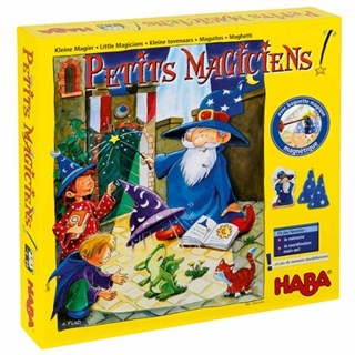 Merlin le grand magicien vient tester la mémoire des apprentis sorciers. Les neufs chapeaux cachent des animaux. En avançant avec le dé, Merlin indique quel animal est recherché. Si l'apprenti sorcier soulève le bon chapeau avec la baguette magnétique, il remporte une étoile. Mais il faut bien observer les engrenages...les joueurs peuvent avoir à les faire tourner! Qui aura suffisamment de mémoire pour récupérer le plus d'étoiles? 2-4 joueurs