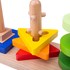 Tournez et tournez chacun des carrés, triangles et cercles en bois colorés pour les faire glisser vers l'un des trois piquets jusqu'à ce qu'ils atteignent la base.