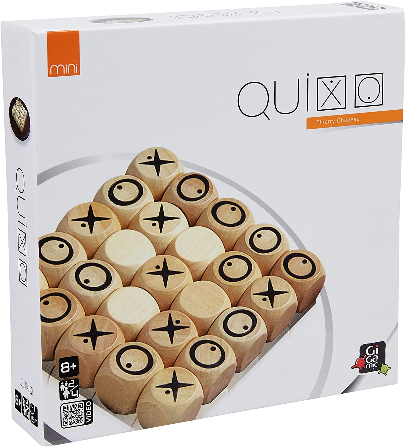Quixo Mini, un jeu de stratégie et de réflexion de la marque Gigamic. Référence GDQI.Cet article ne convient pas aux enfants de moins de 3 ans.Age minimum recommandé : 8 ansAge maximum recommandé : 12 ans