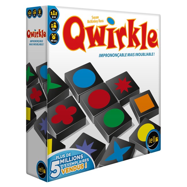 Quelques secondes suffisent pour apprendre à jouer à Qwirkle ! Chaque joueur essaye de marquer le maximum de points en constituant des lignes de formes ou de couleurs identiques. Mais si les règles sont simples, la victoire passe par une audace tactique et une stratégie bien élaborée. Qwirkle se compose de 108 tuiles en bois avec 6 formes et 6 couleurs différentes.