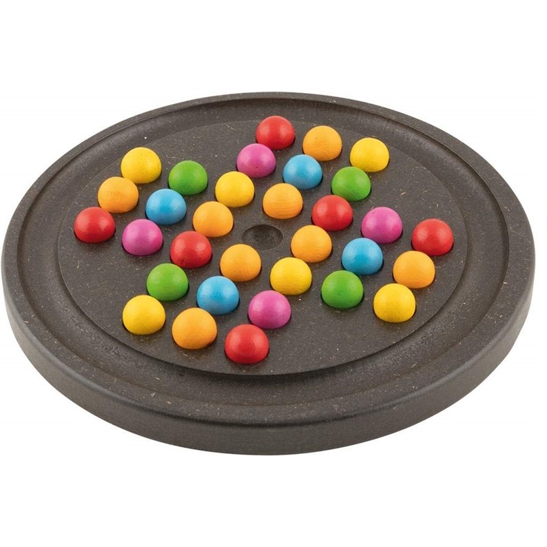 Ce jeu de solitaire est également pratique avec un rebord tout autour du plateau pour accueillir au fur et à mesure les billes retirées du jeu.