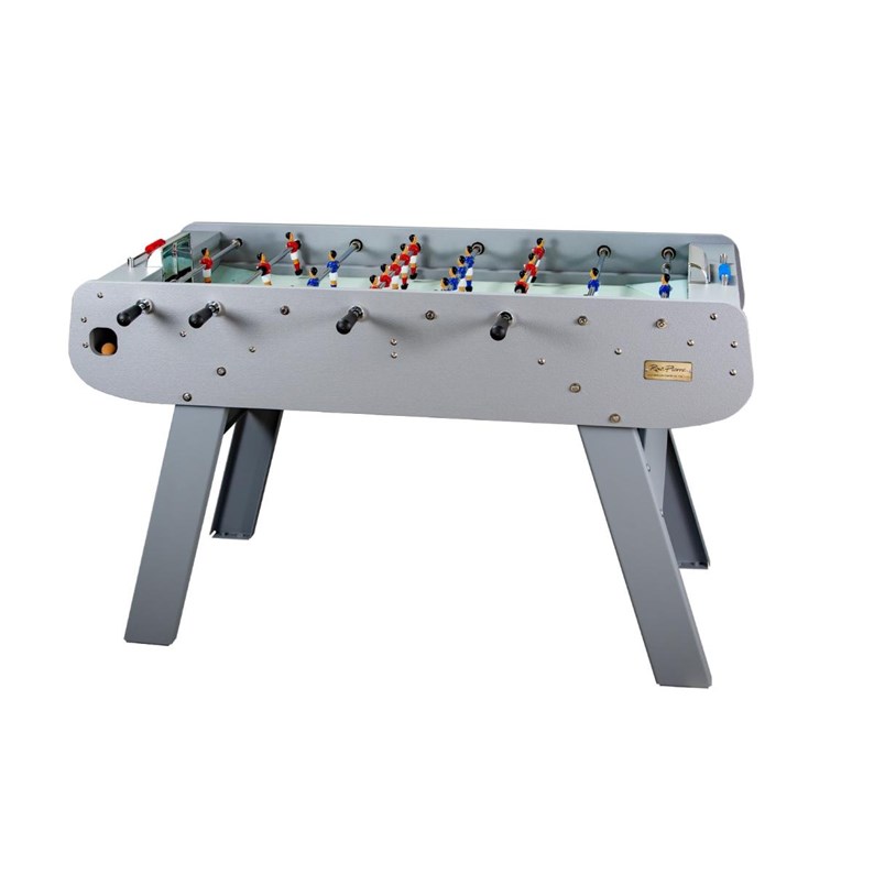 Baby-foot de « café » pour aires de jeux intérieures ou extérieures. Jeu de barres en acier avec triple chromage et joueurs métal vissés sur les barres, décorés à la main. Puissance de tir et parfait contrôle de la balle. Double compteurs de points bicolores. Retour latéral des balles. Construction générale en résine thermoplastique haut densité, teintée dans la masse (imputrescible, résistant à l'humidité, le gel, la chaleur, l'exposition aux UV, 100% recyclable). Surface de jeu hydrofuge, anti-moisissures. Piètement en acier thermo-laqué. Visserie acier inoxydable. Poignées ergonomiques professionnelles. Meuble compact et stable garanti 3 ans. Jeu entièrement pré-monté en usine. Fabriqué en France. DIM EXTERIEUR 156x100x95cm. POIDS 67 kg GARANTIE. 3 ANS meuble 3 ans. SAV Procédure retour usine et échange